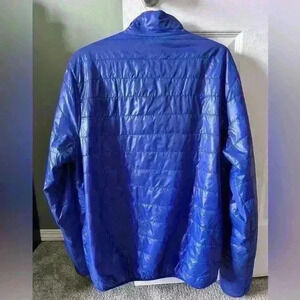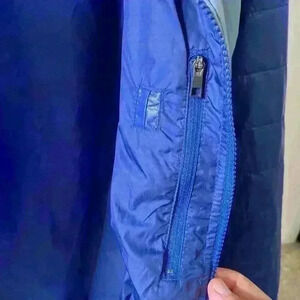 Mens Nike Y2K 2000’s puffer lightweight jacket size XL in excellent condition. Very comfortable and lightweight almost like a puffer jacket. Nice retro colours of dark and light blue with an orange swoosh. Relaxed fit. In great condition with no rips stains or flaws. 2 front snap button pockets with an inner zipper phone pocket. Measures 22.5” pit to pit and 27.5” top to bottom. Fits nicely on a size large too