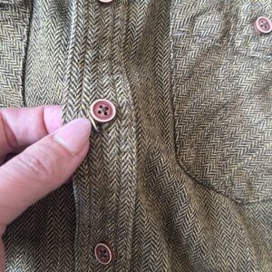 No stains. Preloved condition. Some loose threads on 1 button hole that isn’t visible when worn.