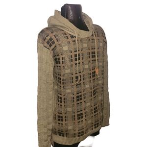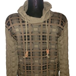 Mens Olive Green and Black Checkered Knit Hooded Sweater