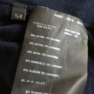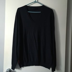 Mens PRADA Navy Blue Cotton + Cashmere V Neck Sweater Size 54 XL XXL