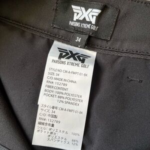 Mens PXG golf pants size 34x32 with an 8” leg opening. All black in excellent well kept condition. No rips stains or flaws at all. 100% polyester and nice and lightweight and breathable. Perfect for your early morning or late evening chilly rounds this season!