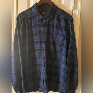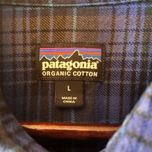 Mens Patagonia long sleeved Fjord plaid flannel shirt made from 100% organic cotton size large in good pre owned condition with no rip stains or flaws. Measures 24” pit to pit and 29” top to bottom. Beautiful dark rich colours in a trendy plaid pattern.