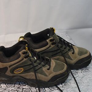 Comfortable hiking boots with a steel toe. Leather upper. SZ 8W