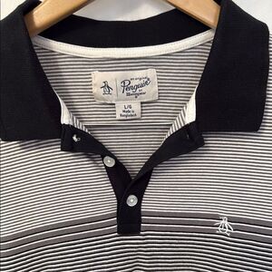 Men's Penguin Striped Polo Shirt - Black and Gray sz Large