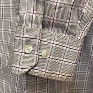Barely worn Men's Perry Ellis Premium button down shirt. Colours are grey, white, and purple.