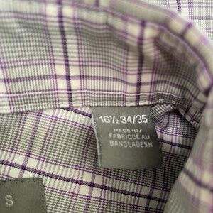 Barely worn Men's Perry Ellis Premium button down shirt. Colours are grey, white, and purple.