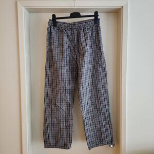 Made from lightweight cotton these plaid pajama pants are cut for a relaxed fit; elasticized drawstring waist; 100% cotton; brand new; machine washable; waist 40 cm (16 inches); leg length 95 cm (37 inches).
