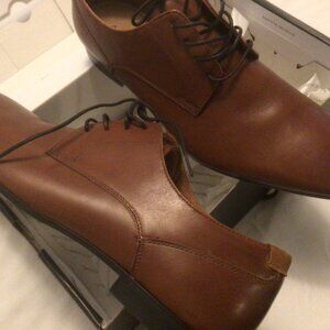 Aldo plain-toe Oxford shoes, tan/brown, US 13 M, smooth soft leather upper, synthetic outer sole, New, never worn.