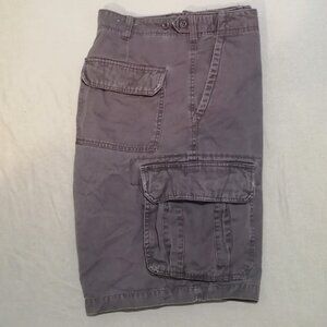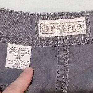 This listing is for a pair of men's cargo shorts made by Prefab. These shorts feature a tab on the waist that gives them a bit of adjustability. They are in good used condition. 100% cotton. Size 36.