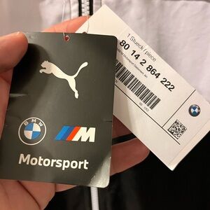 Brand new with tags mens Puma x BMW Motorsport statement lightweight jacket size medium. Measures 23” pit to pit but stretch to 24” and top to bottom is 29”. Such a beautiful statement jacket that has a mesh inner for added comfort. This is a great piece for the BMW enthusiast and collector!