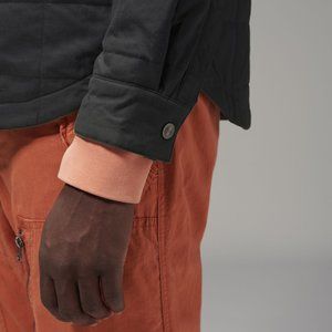 Quilted jacket shirt with a sueded hemp shell and soft hemp organic cotton flannel lining. Light insulation of recycled plastic bottles. Chest pocket, side pockets, 3 inside pockets.