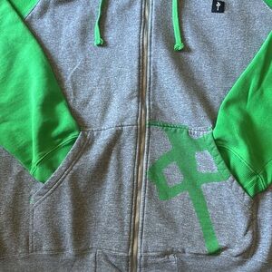 Red Dragon Apparel green & grey design Y2K/Skate hoodie. Size XXL.