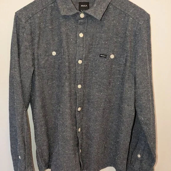 Men's RVCA Blue Flannel Button-Up Harvest Neps Flannel Size medium, fits more like a small. Great condition.