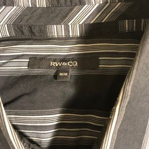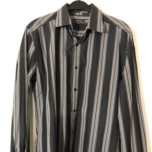 Men's long-sleeved grey striped shirt by RW&CO, casual or dress, medium (fitted). 100% cotton, excellent condition.
