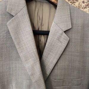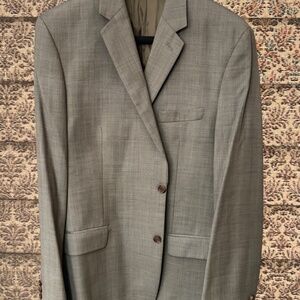 Classic fit suit jacket with structured chest and shoulders. Well tailored, fully lined, 3.35 inch lapels with button hole at left lapel, two button silhouette. Cuffs with three decorative buttons, left chest welt pocket, twin front waist flap pockets and three interior pockets. 100% wool.