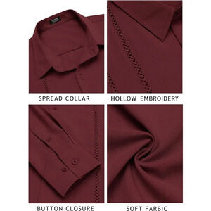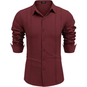 Cuban Guayabera Design --- Mens guayabera shirts features long sleeve, spread collar, button closure, vertical pleats, relaxed fit. Distinct cuban design makes this shirt more fashionable and classic.