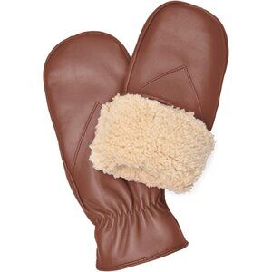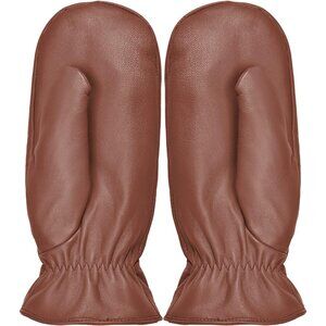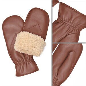 Men's Red/Brown Winter Warm Leather Lambskin Mittens Fleece Lined Gloves