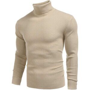 ❤️ Mens Ribbed Slim Fit Knitted Pullover Casual Turtleneck Sweater