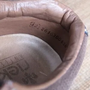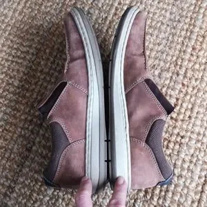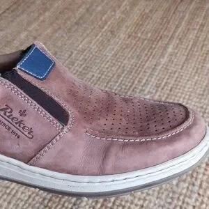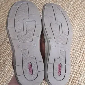 Light brown leather slip-ons from Rieker. They've obviously been pre-loved, but still in very good used condition with lots of life left. Size 42; according to the Rieker size charts this translates to a size 9. If you need measurements let me know.