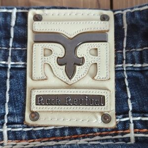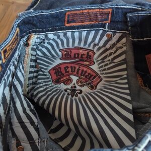 Men's Rock Revival Blue Jeans with Embroidered Pockets