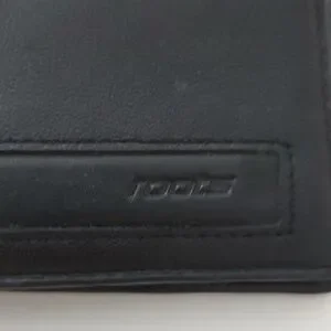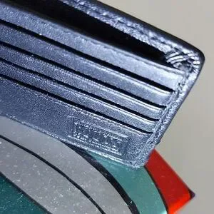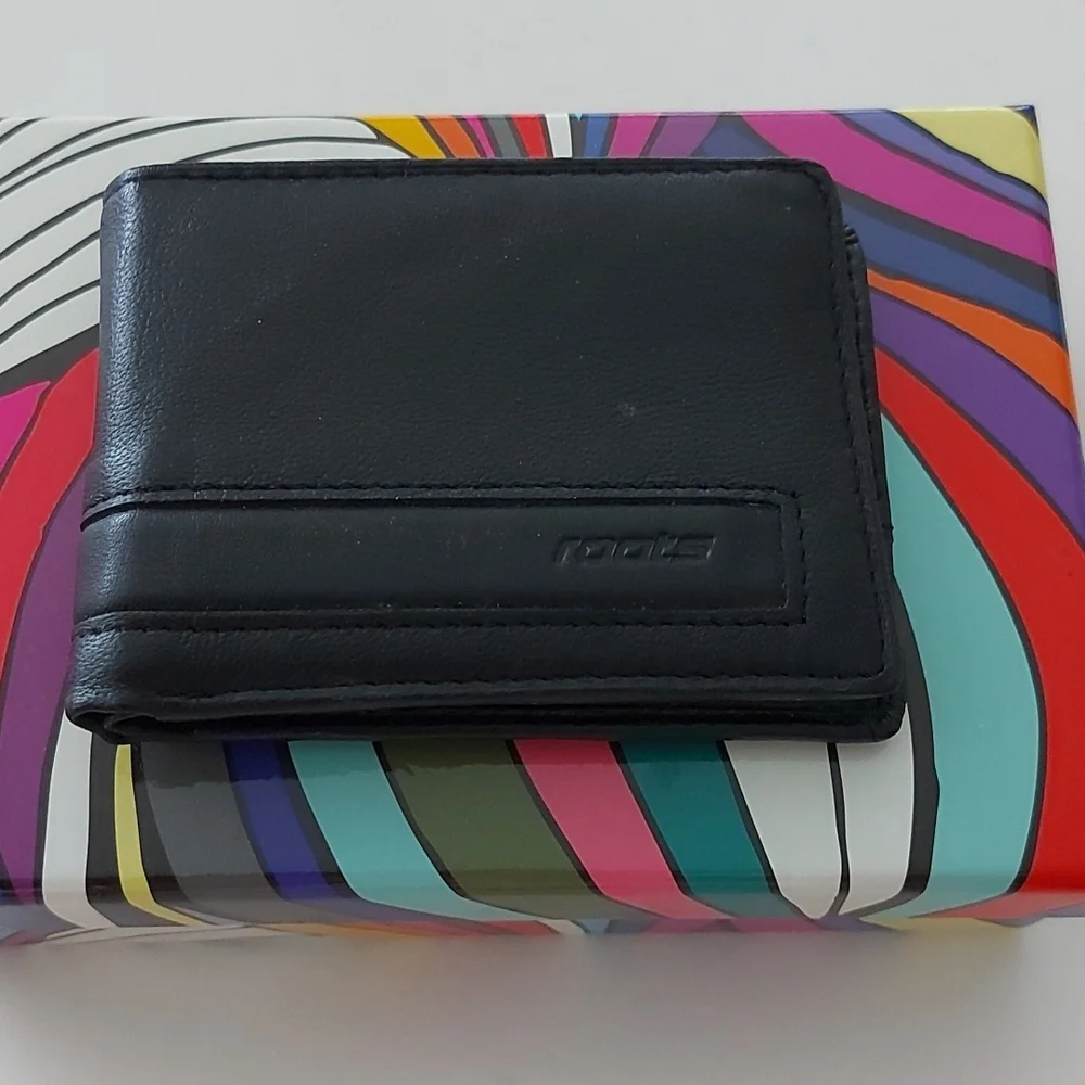 Genuine black leather Roots wallet for men.