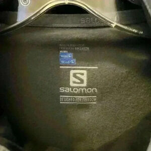 Mens Salomon trail running jacket size large in excellent condition with no rips stains or flaws. Has 2 zipper front pockets and an inner fleece lining. Also has reflective striping on sleeves and back of jacket. Helps keep the body temperature at a core level while maintaining comfort and performance.