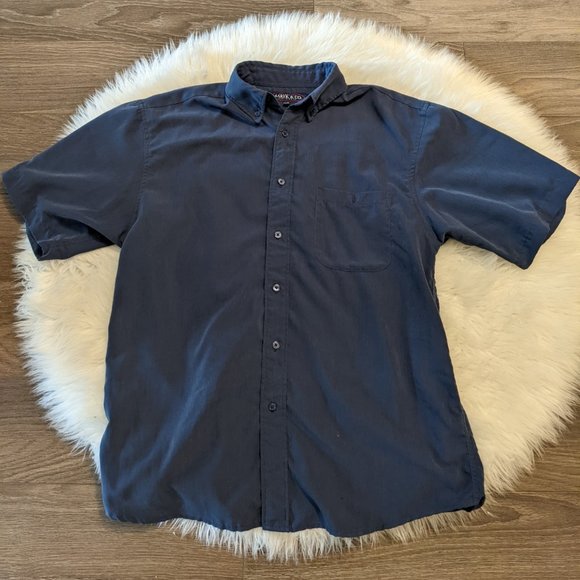Mens - Short Sleeve Button up Shirt - Navy Blue - Size Medium