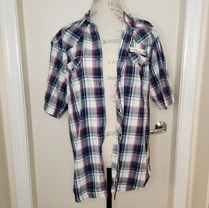 Men's Short Sleeve Plaid Buttoned Shirt