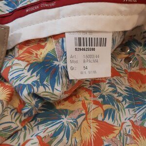 Meyer B Palma Chino shorts in tan beige. Crafted from a comfortable cotton blend, these classic-fit shorts feature a flat front and button closure for a sleek and timeless appearance. With its solid pattern and pockets, these shorts are perfect for both summer and spring occasions. The shorts are available in size XL 38 in waist. The brand is Meyer, a trusted name in men's clothing. Whether you're going for a walk in the park or meeting friends for lunch, these shorts will keep you comfortable and stylish.