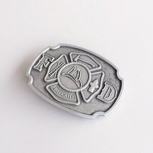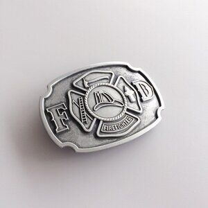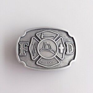 Men's Silver Antique Brushe Metallic Zinc Alloy Firefighter FD Belt Buckle