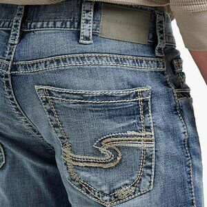 Relaxed Fit Zac: These men's jeans sit just below the waist with a relaxed hip and thigh and feature 5-pocket styling