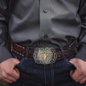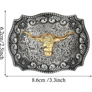 Men's Silver Long Horn Bull Western Golden Rodeo Texas Cowboy Large Buckles