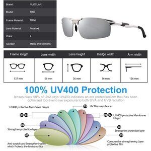 TAC POLARIZED AND MIRROR COATING LENS:All the lens 100% UV400 protection coating, blocks 100% harmful UVA & UVB Rays.filtering 100% Harmful Blue Light Up to 400nm. Restore true color, eliminate reflected light and scattered light,make the scenery more clear and soft and protect eyes perfectly.