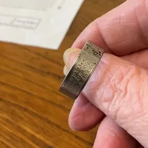 Silver tone, size 11 Lords Prayer ring, some tarnishing and staining