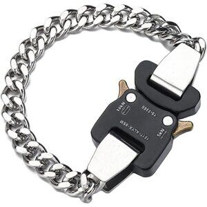 Crafted from durable alloy, this medium-sized buckle features a striking combination of silver and black tones, blending classic.