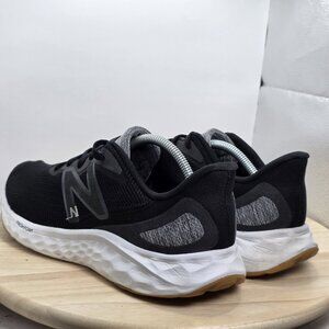 The product is a pair of Men's Size 11 New Balance Fresh Foam Arishi V4 Shoes in a sleek black color with silver metallic accents. These athletic running sneakers feature a lightweight design with a rubber outsole for comfort and durability. Perfect for activewear in the summer, fall, and spring seasons, these sneakers have a lace-up closure and a low-top shoe shaft style. The mesh upper material and foam insole provide breathability and support for running and jogging activities. With the iconic New Balance brand and a modern style, these shoes are a versatile and stylish choice for any sports enthusiast.