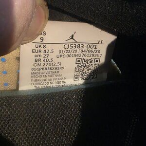 The product is a pair of Men's Size 9 Jordan Air Zoom Renegade Black White Sneakers from Nike. These athletic shoes feature a lace-up closure, rubber outsole, and are designed for activities such as gym training, cross-training, and running. The shoes offer arch support, cushioning, and are lightweight, making them comfortable and breathable for all-day wear. With a stylish geometric pattern and a Batman character design, these sneakers are perfect for casual or activewear occasions in the spring, summer, or fall seasons.