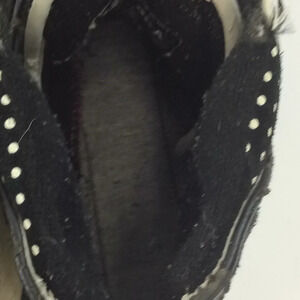 Black supra sneakers in a size mens 9, with removable insoles from pet friendly home. Some discolouration on white trim, and lint on interior. Otherwise good condition. Made in China.