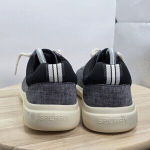The Men's Size 9.5 Sperry Top-Sider Captain's Moc Toe Sneakers in blue are a stylish and comfortable option for casual wear. Featuring a solid pattern, lace-up closure, and rubber outsole, these sneakers are perfect for the summer and spring seasons. With a comfortable fabric upper and athletic type design, they offer both style and functionality. The classic Sperry brand ensures quality and durability, making these sneakers a versatile addition to any man's wardrobe.
