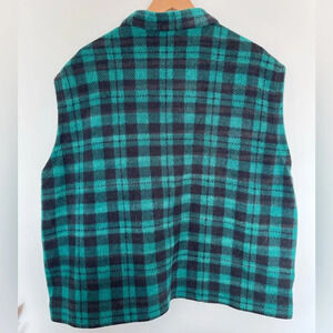 Perfect fall addition plaid sleeveless jacket with front zipper.Approx size large take time to look at measurements since it does not have any tag. Approx. Measurements: