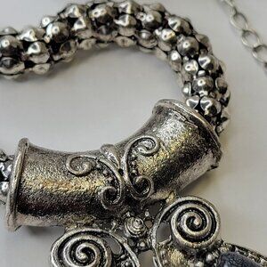Silver tone Thick Chain Necklace with Large Black Oval Pendant