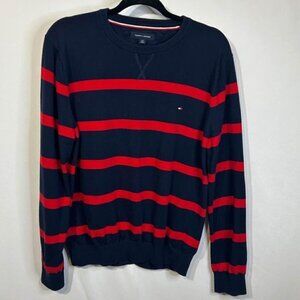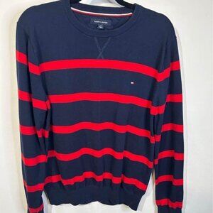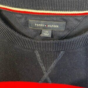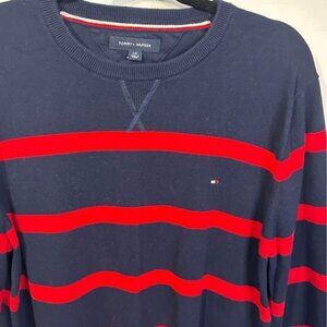 Mens TOMMY HILFIGER crew neck sweater. Navy/red. New condition. Size Large.