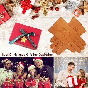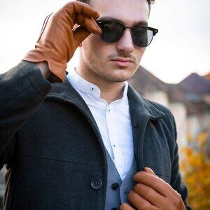 Men's Tan Luxury Italian Cashmere Sheepskin Wool Lined Genuine Leather Gloves