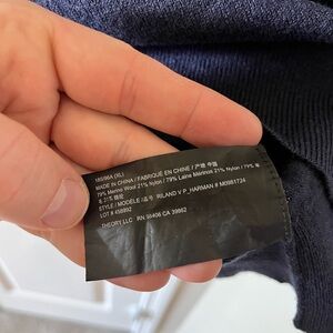 Mens Theory Merino Wool blend V neck sweater size is XL colour is navy blue. Sweater is in excellent condition no rips stains or flaws. Measures 22” pit to pit with stretch to 23” and 29” top to bottom. Beautiful sweater that is very comfortable and can be worn casually or for dressing up!