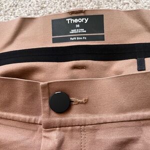 Mens Theory Raffi Slim Fit Pants size 36x32 with a 7.5” leg opening. Beautiful light brown colour in excellent like new condition - no rips stains or flaws. Beautiful material for a comfort and style that is unmatched.