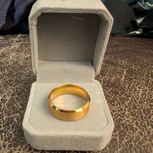 size 11 Brand New Titanium band. Gold finish. Comes with box. Very nice ring. I ordered wrong size.