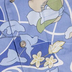 Men's Tommy Bahama Hawaiian Style Floral Pattern Blue Sz. Small 100% Silk Casual