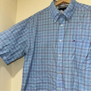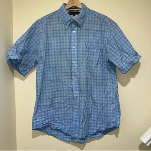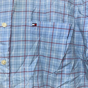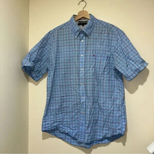 Men’s Tommy Hilfiger Brand Blue and White Plaid Button Down Casual Shirt Size: L