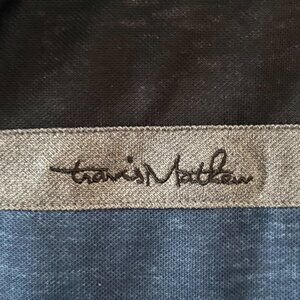 96% polyester 4% spandex. Signature TravisMathew logo on back yoke Built-in collar stays for the perfect shape. Nice grey colour with black and blue accents.