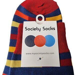 Men's Trouser Socks Red Blue Yellow Stripe Pattern 80% Cotton Size 7-13